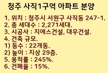 이렇게 청주 사직1구역 아파트 분양정보를 정리했습니다.