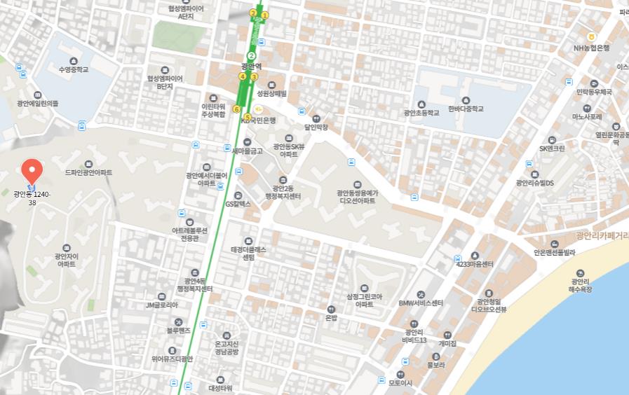 1. 위치 : 부산 수영구 광안동 1240-38번지.