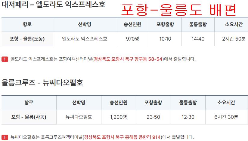 포항에서 출발해서 울릉도가는 배편은 2개가 있습니다.