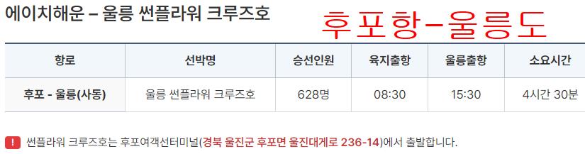 반대로 울릉도에서 후포항으로 돌아오는 배는 15:30에 있습니다.