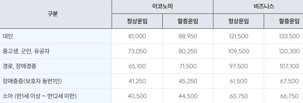 청소년 및 소아, 경로 대상자는 할인이 적용되니 참고하시기 바랍니다.