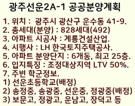 첫번쨰. 광주선운2A-1BL 아파트 공공분양계획