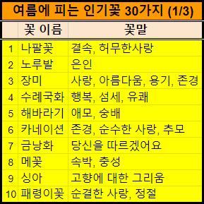 이렇게 여름에 인기있는 꽃 30가지를 정리해서 알려드렸습니다.