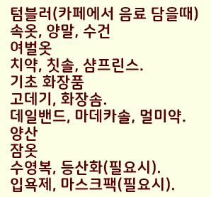 속옷이랑 세면도구 말고도 챙겨야할 필수품이 많습니다.