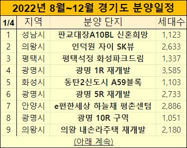경기도에 8월부터 12월까지 분양예정 아파트들 정리했습니다.