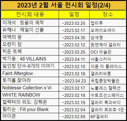 2월 서울, 경기도 축제 및 전시회 일정표를 확인하세요.
