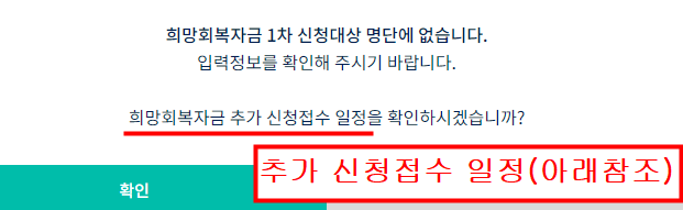 그리고 1차 신청명단에 없습니다라고 안내를 받은 1차 미지급자는 2차 지급대상이나 확인지급자 또는 이의신청을 해야하는 경우일수있습니다.