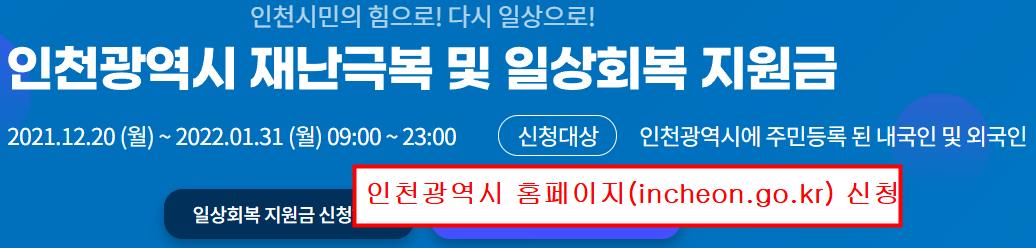 첫번째. 인천 일상회복자금 10만원 / 2022.1.31까지