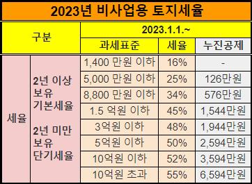 아래 2023년 비사업용 토지세율도 별도로 정리해놨습니다.