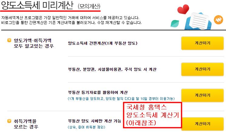 국세청 양도세 계산기도 아래 남겨놨습니다.