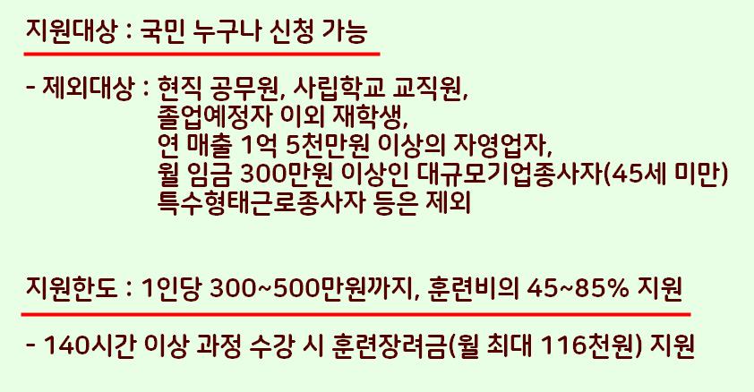 내일배움 카드 신청 대상은 전국민 모두이며,