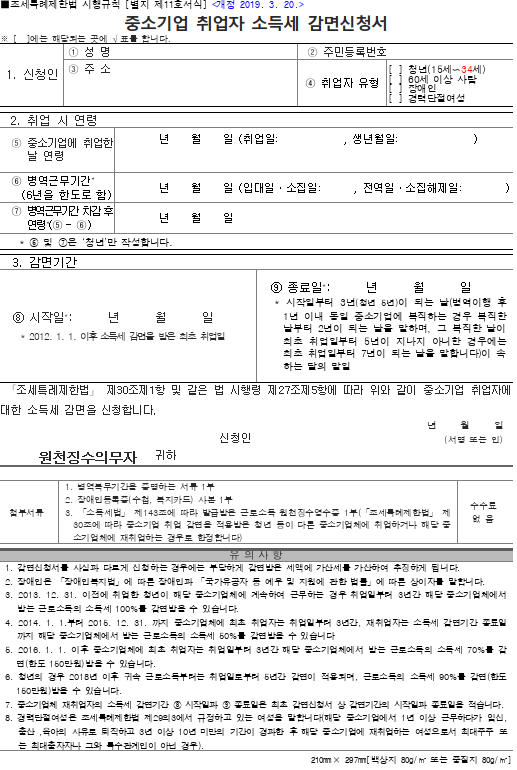 소득세 감면신청서 양식 작성시 주의사항을 확인하세요.