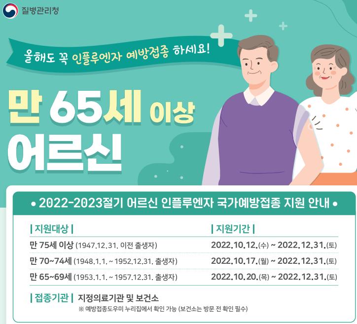 2. 어르신 독감예방접종 시기 : 2022.10.12.~2022.12.31.