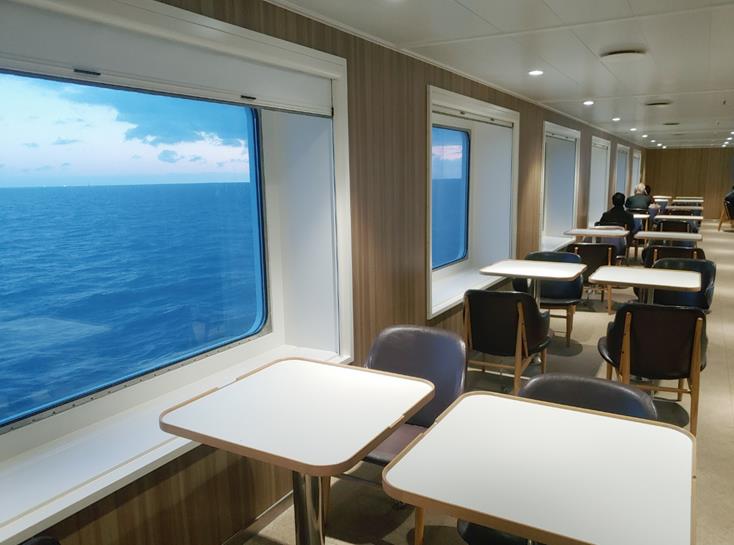 세번째. 배에서 조식과 석식을 제공하며 바, 편의점, 카페, 노래방 등 편의시설이 많다.