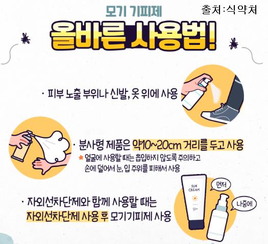 안전성과 유효성이 확보된 모기기피제를 사용하시길 추천드려요.