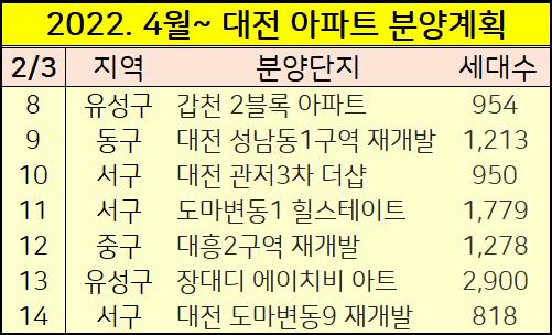 2022년 4월이후 대전 분양예정아파트들을 정리했습니다.