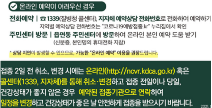 또한 아래의 코로나 예방접종 예약 전화번호를 남겨놨습니다.