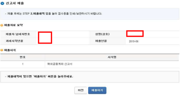 이제 해외금융계좌 신고서 작성하기가 거의 완료되었습니다.