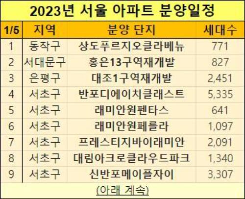 아래 2023년 서울 아파트 분양계획 표도 같이 참고하세요.