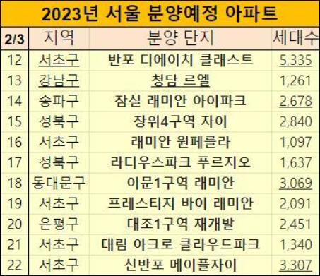 2023년 서울 분양예정 아파트도 표로 정리해놨습니다.