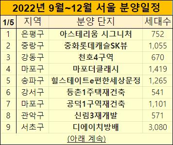 2022년 9월부터 12월까지 서울 아파트 분양계획을 정리했습니다.