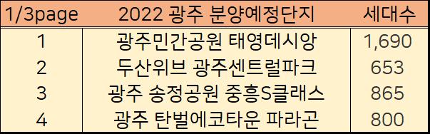 2022년에 경기도 광주에서 분양예정인 아파트들을 표로 만들었습니다.