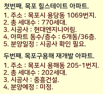이렇게 목포시 분양예정인 아파트들을 정리했습니다.