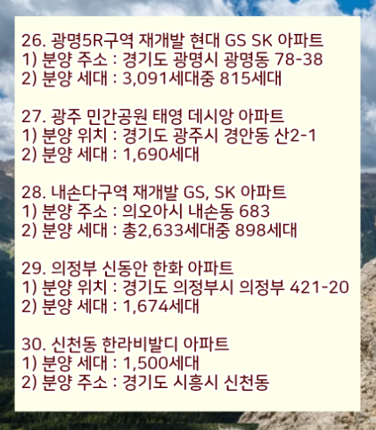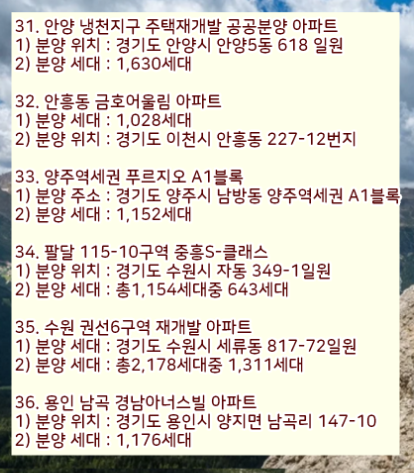 2021년 경기도 아파트 분양계획과 청약일정을 살펴보겠습니다.