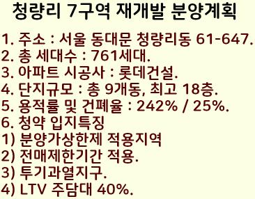 서울 동대문구 청량리 7구역 재개발 아파트 분양계획을 정리했습니다.