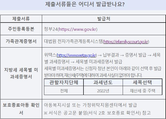 서울시 청년 이사비 지원금 신청서류는 다음과 같습니다.
