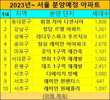 2023년 서울 아파트 분양계획도 표로 만들었습니다.