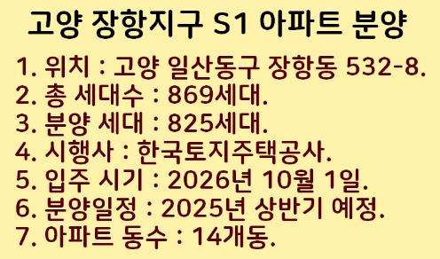 고양 장항지구 S1 아파트 분양계획을 정리했습니다.