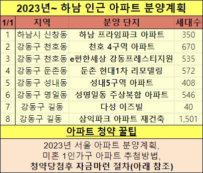 아래 2023년 서울, 경기도 아파트 분양일정표도 같이 확인하세요.