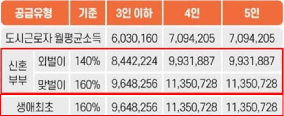 생애최초 특별공급 소득기준 1인가구