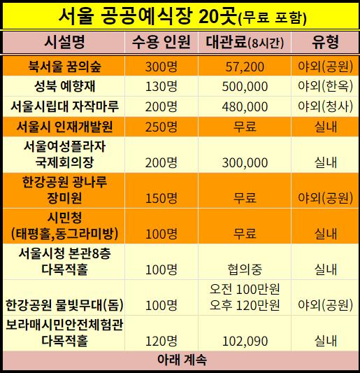 서울시에서 지원하는 공공예식장은 무료입니다.