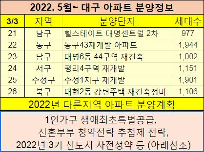 2022년 5월이후 대구에 분양예정인 아파트들을 정리했습니다.