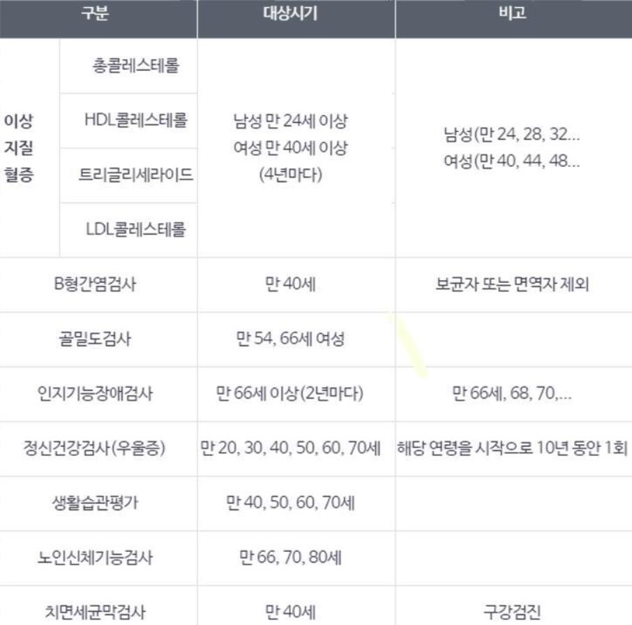 2년에 한번씩 건강검진 받을때 지원받을수있으니 확인하시기 바랍니다.