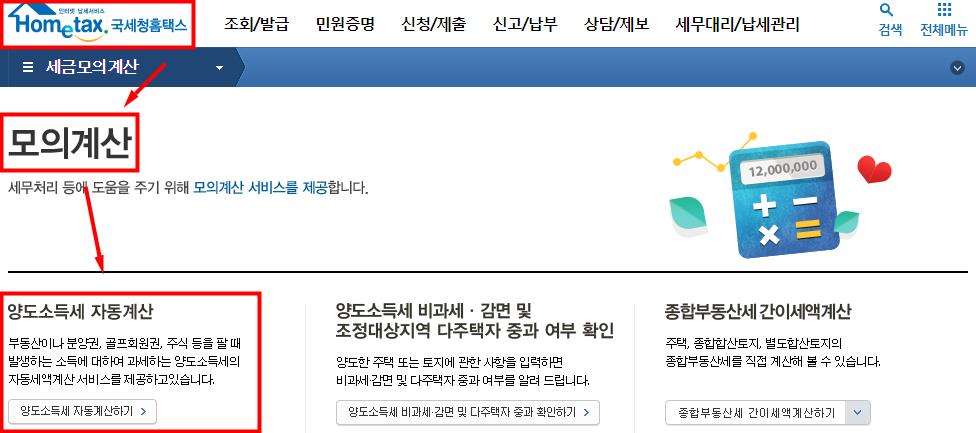 아래 국세첨 홈택스 양도소득세 계산기 이용할수있도록 출처 남깁니다.