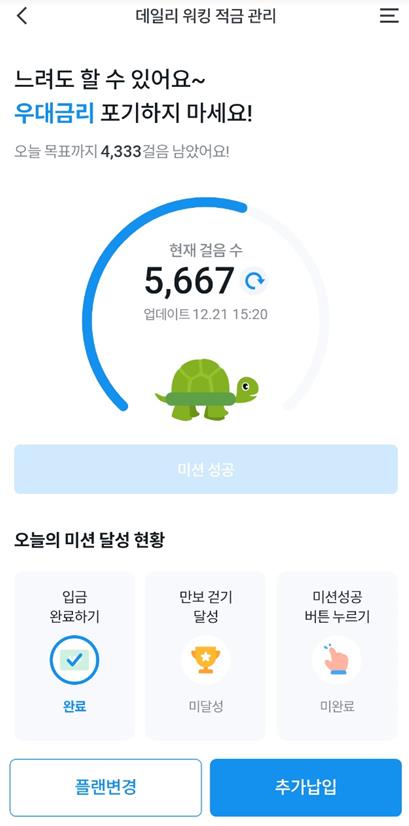 다른분들도 주거래 은행에 만보걷기나 데일리 워킹적금이 있는지 확인해보시는것도 좋다고 생각합니다.
