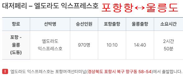 포항에서 울릉도 가는 배는 주간과 야간으로 나눠져 있습니다.