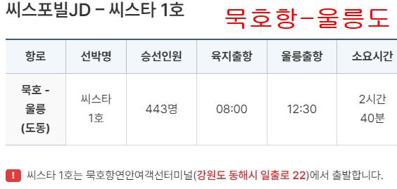 묵호항에서 울릉도가는 배편 예약도 알려드린 씨스포빌에서 하실수있습니다.