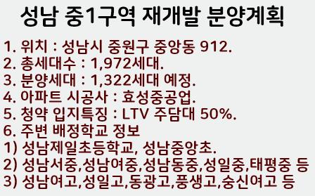 성남 중1구역 재개발 분양계획