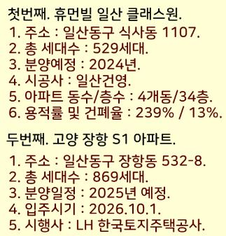 이렇게 2024년 이후 일산에 아파트 분양일정을 정리했습니다.
