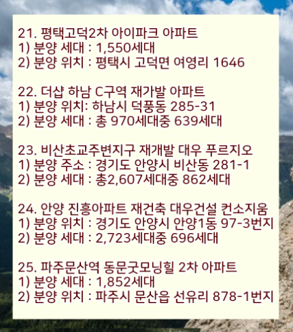 2021년 경기도 아파트 분양계획과 청약일정을 살펴보겠습니다.