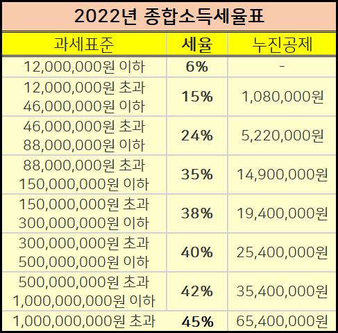 위에 2022년 종합소득세율표를 엑셀 xls 파일로 정리해서 첨부합니다.