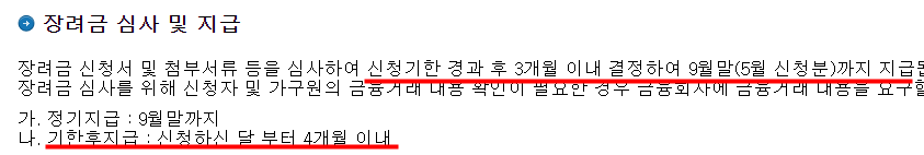1. 5월에 정기신청기간동안에 신청하시분들은 9월말까지 지급 예정.