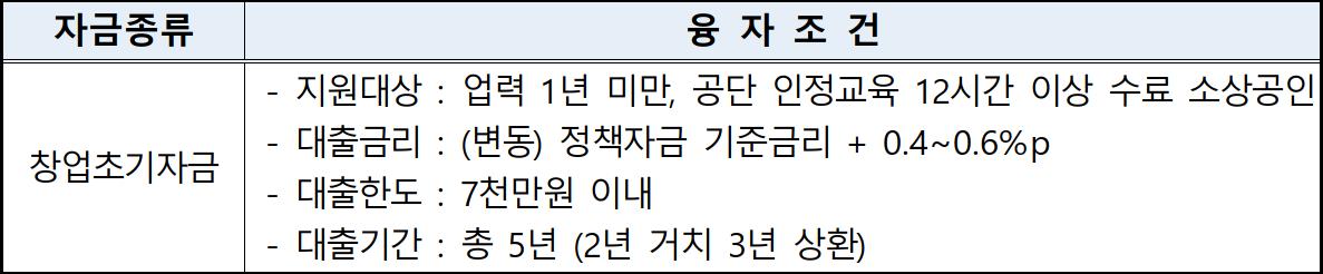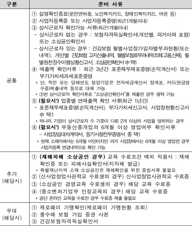 2. 중소벤처기업부 교육과정 12시간 이상 수료한 소상공인 및 자영업자.