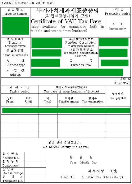 혹은 회계과나 경영지원팀에서 증빙자료로 보관하기위해서 부가세 과세표준증명원을 많이 발급하고 있습니다.