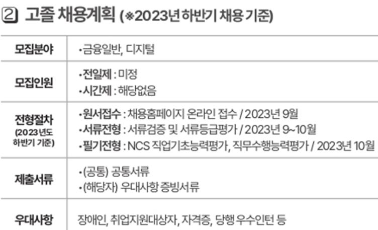 2. 모집 분야 : 금융 일반, 디지털, 글로벌 금융전문, 고졸인재 채용.