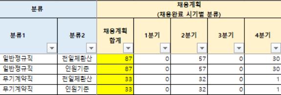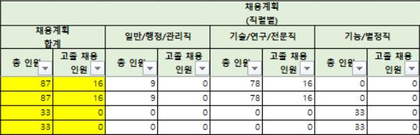 아래 직무별 채용인원을 세부적으로 표로 정리해놨습니다.